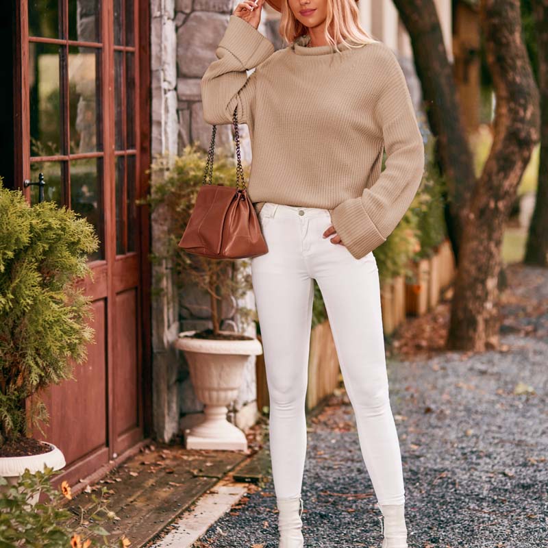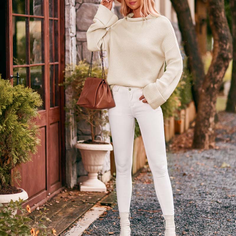 Casual Gebreide Trui In Effen Kleur